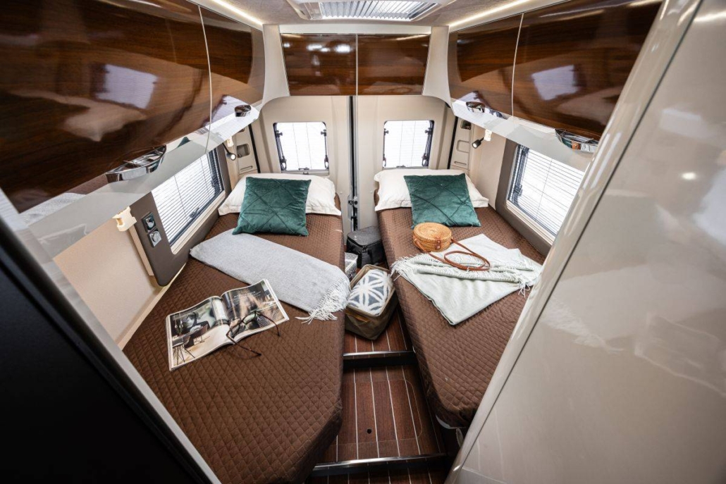 De Mobilvetta Admiral buscamper combineert 50 jaar Italiaans vakmanschap met moderne technologie in een compacte van (5,99-6,36 m). Ideaal voor koppels of kleine gezinnen, biedt deze premium buscamper luxe, wendbaarheid en Klasse 3 isolatie met 10 jaar dichtheidsgarantie. Kies uit drie indelingen: K 5.1 (dwarsbed), K 6.3 (lengtebedden) of K 6.5 (elektrisch hefbed). Met Made in Italy design, eco-leer en slimme oplossingen is de Admiral perfect voor avontuurlijke vakanties.